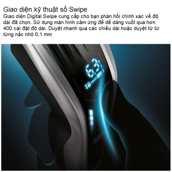 - Cữ lược của tông đơ cho phép bạn cắt tóc ở chiều dài từ 0,5mm – 42 mm và thay đổi độ dài thông qua nút điều khiển ngay trên thân.