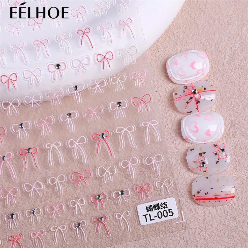 Sticker 5D Lụa Nổi Hình Dây Nơ Mảnh Mix Màu Trắng Hồng Cao Cấp TL004 Đính Đá Trang Trí Móng Siêu Dễ Thương Phong Cách Hàn Quốc Điểm Nổi Bật Của Sticker 5D Lụa Nổi