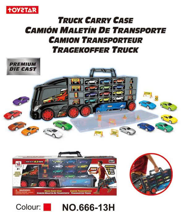 ✨TOYSTAR - 666-13H Mô hình Bộ xe tải vận chuyển (gồm 12 xe ô tô và 8 biển báo giao thông)