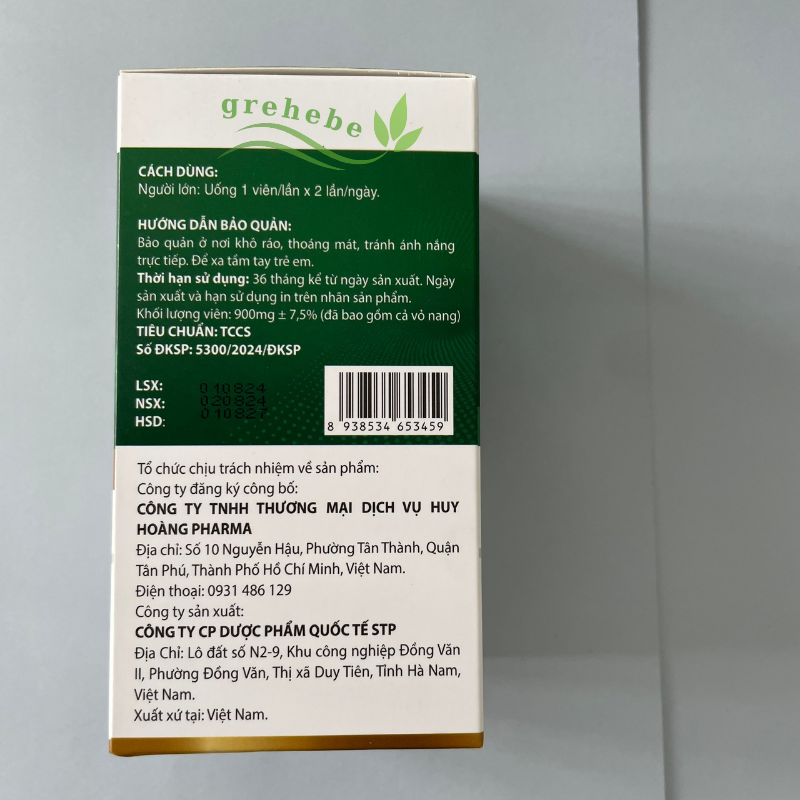 – Phụ liệu: vỏ nang gelatin, chất độn (tinh bột), chất bảo quản (nipazin, nipasol), chất chống đông vón (magie stearat, talc).