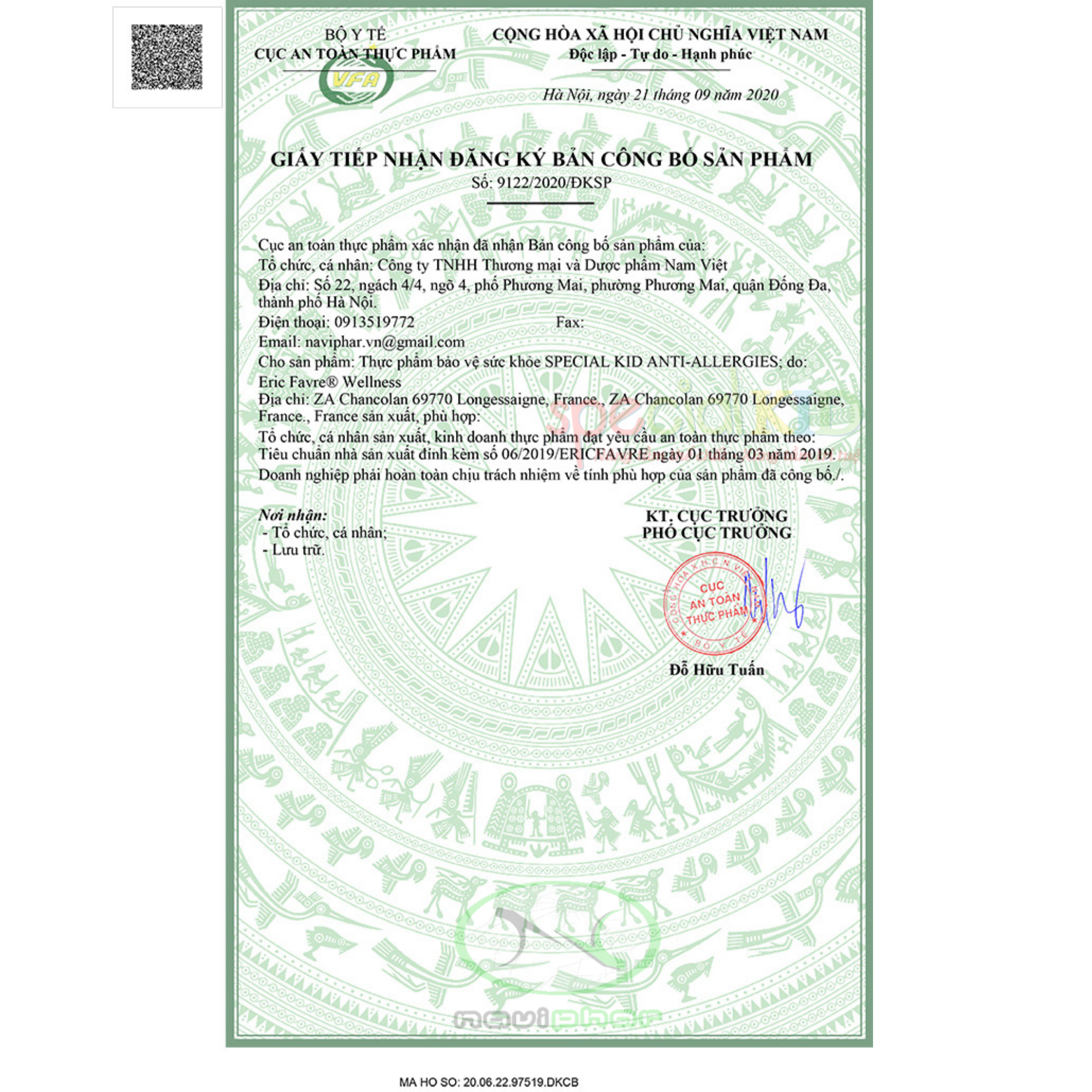 Special Kid là thương hiệu nhập khẩu nguyên hộp từ Pháp, đáp ứng hầu hết nhu cầu phòng và hỗ trợ điều trị các bệnh thường gặp của trẻ trong những năm tháng đầu đời. Special Kid Anti Allergies được bào chế chuyên biệt dành cho trẻ em, mùi vị dễ chịu, chỉ cần sử dụng 1 lần/ngày. Tiết kiệm. Dễ nhớ
