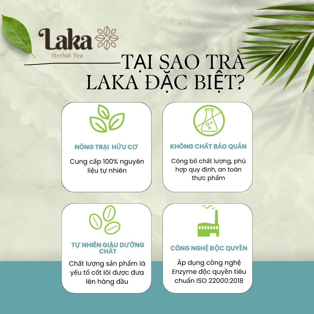 LAKA HERBAL TEA áp dụng công nghệ ủ men lactobacillus có định hướng: khử toàn bộ lợi khuẩn và hại khuẩn trong quả cà-phê khô, sau đó chỉ đưa vào lợi khuẩn lactobacillus sống và thuần chủng. Đây là lợi khuẩn được khoa học chứng minh có nhiều lợi ích cho hệ tiêu hoá, giúp giảm cân và giảm mỡ bụng hiệu quả.