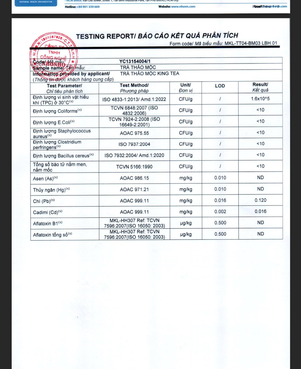 Trà thảo mộc bảo vệ sức khỏe do Hộ Kinh Doanh Huyền Anh Store chịu trách nhiệm sản xuất và phân phối Trà Thảo Mộc Kingtea có thành phần gồm: Trà dây, Cỏ ngọt, Hoa nhài,