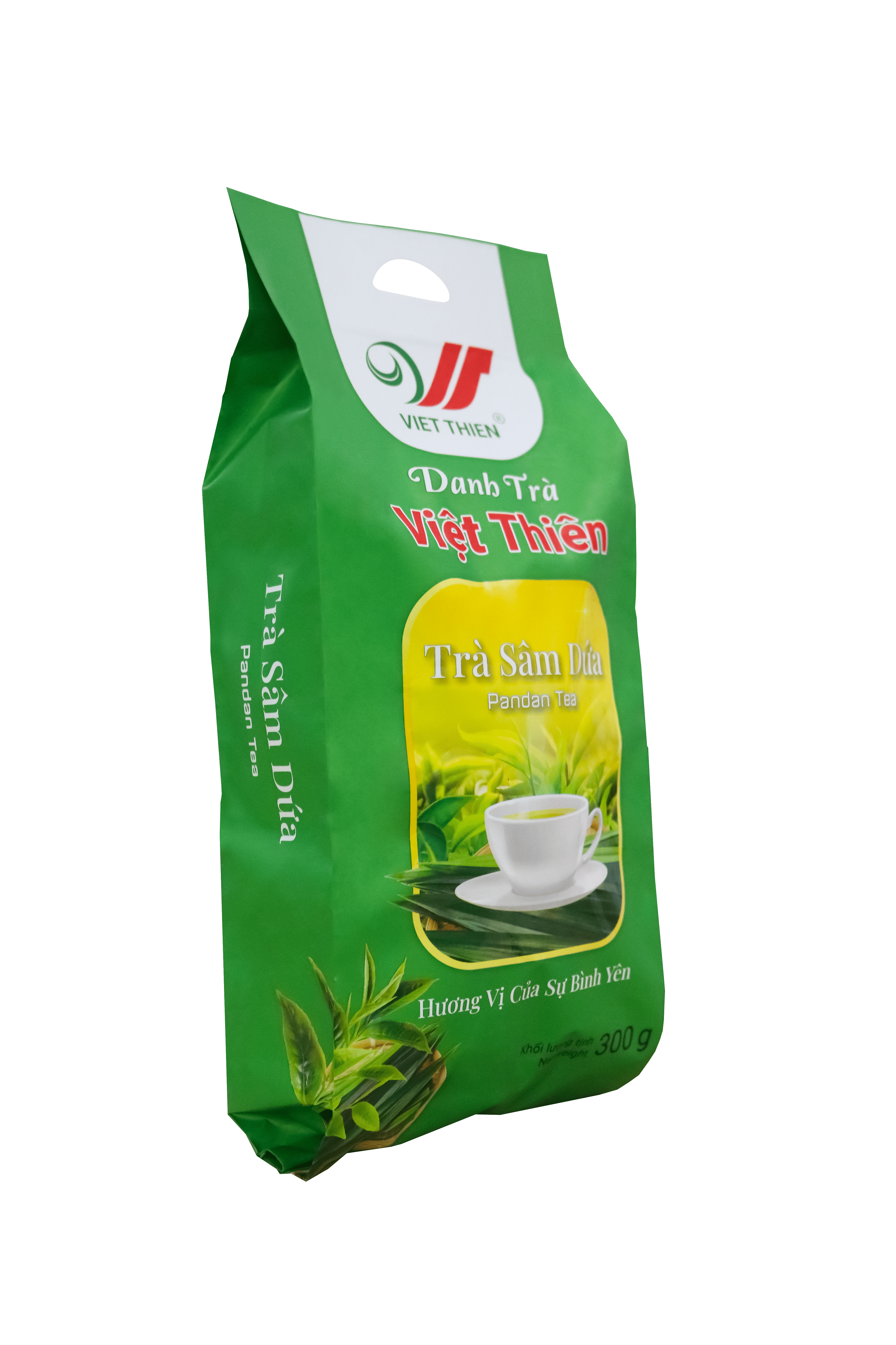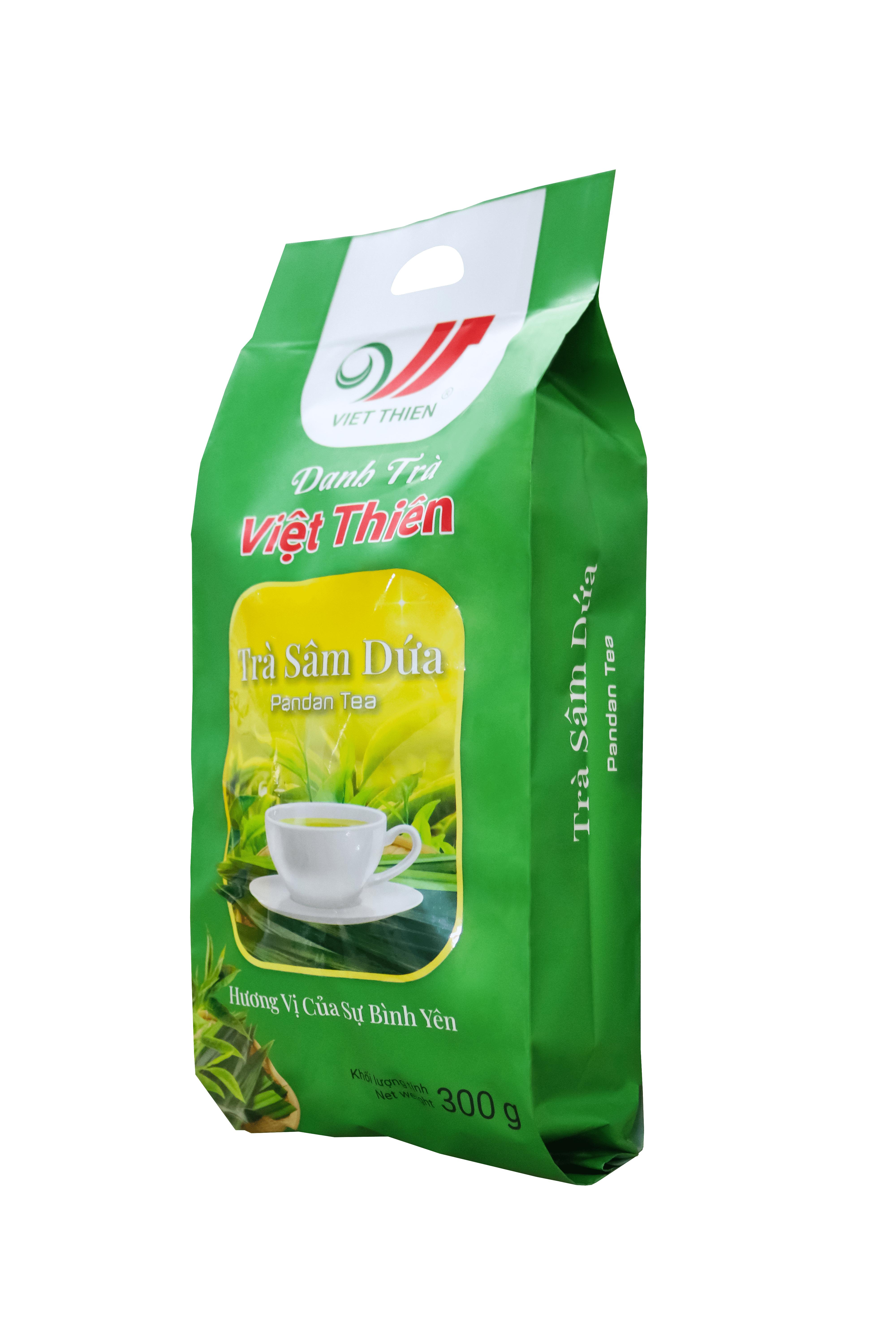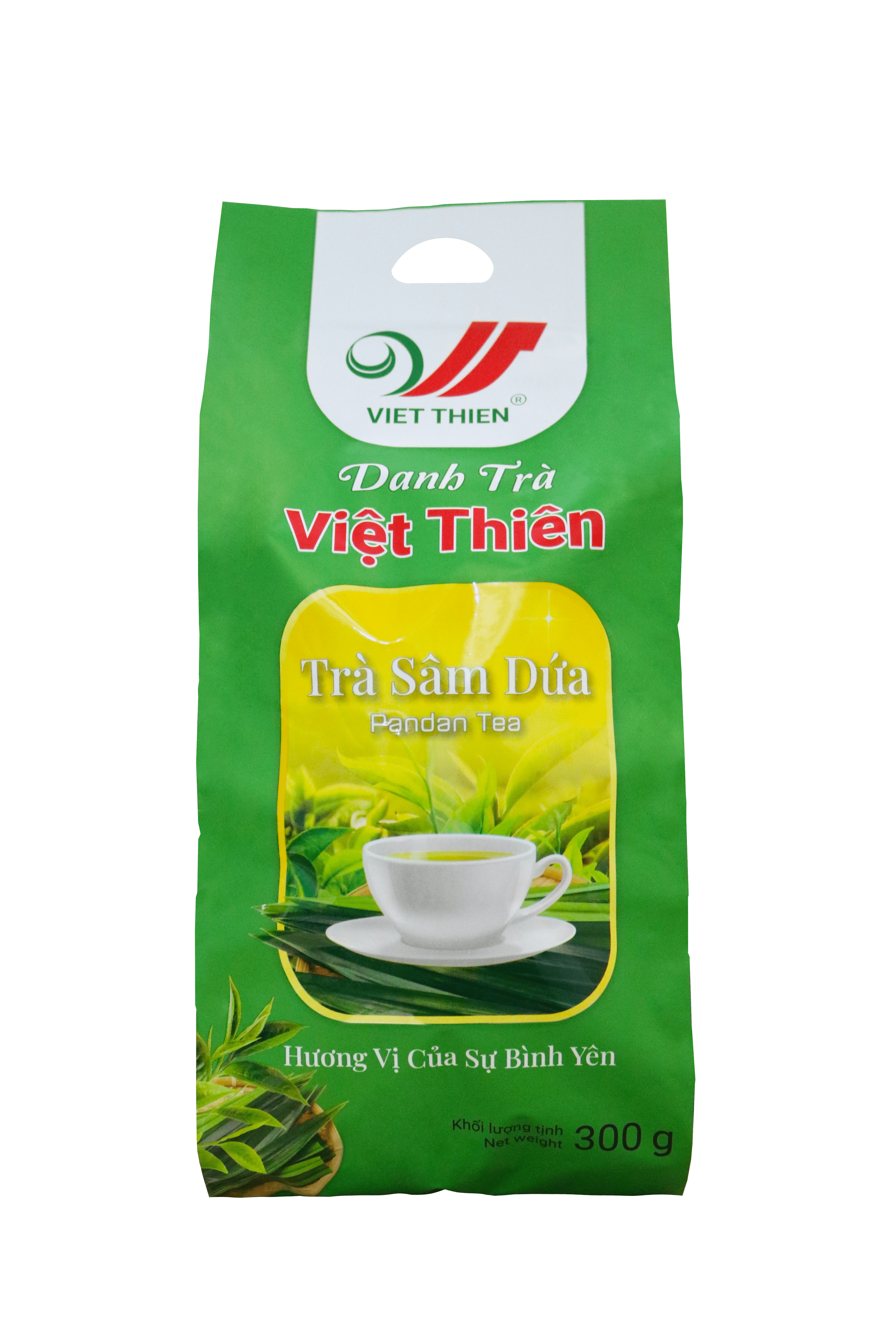 Trà sâm dứa Việt Thiên được tuyển chọn từ những búp trà xanh Bảo Lộc tạo nên một hương vị thơm mát, đặc trưng. Trà sâm dứa Việt Thiên mang vị tự nhiên, thanh mát của lá trà và hương thơm mát từ lá dứa, tạo nên thức uống thơm ngon cho người thưởng thức.   Được chế biến từ 100% lá trà tươi Bảo Lộc và lá dứa tự nhiên. Không dùng chất bảo quản, chất tạo màu, tạo hương cho sản phẩm.   Sản phẩm đạt chuẩn An toàn vệ sinh thực phẩm