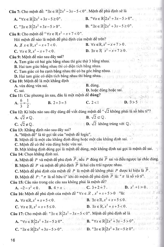 Ngoài ra phần ôn tập cuối mỗi chương bao gồm: Trắc nghiệm nhiều phương án chọn, trắc nghiệm đúng sai