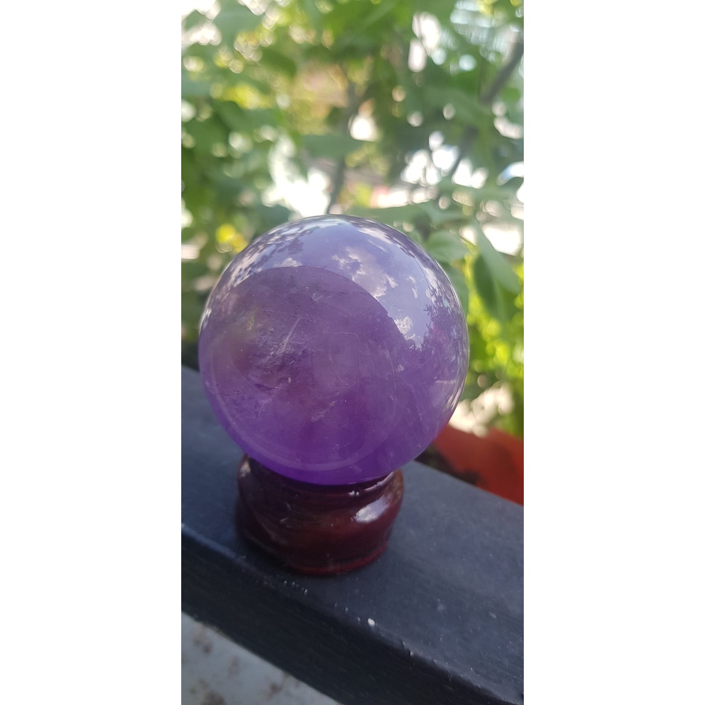 - Trái Bi Thạch Anh Tím tự nhiên đậm tươi nhỏ vừa đế gỗ để bàn size cao 8cm x đk 6cm Công dụng của Quả Bi thạch anh tím tự nhiên ạ :
