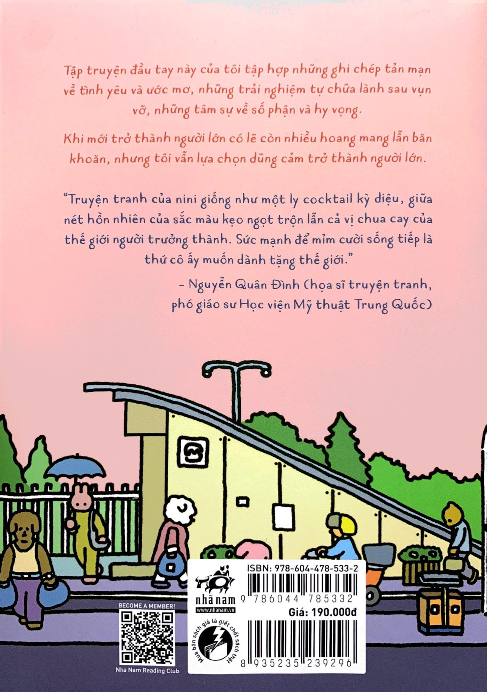 Truyện tranh của nini giống như một ly cocktail kỳ diệu, giữa nét hồn nhiên của sắc màu kẹo ngọt trộn lẫn cả vị chua cay của thế giới người trưởng thành. Sức mạnh để mỉm cười sống tiếp là thứ cô ấy muốn dành tặng thế giới. – Nguyễn Quân Đình (họa sĩ truyện tranh, phó giáo sư Học viện Mỹ thuật Trung Quốc)