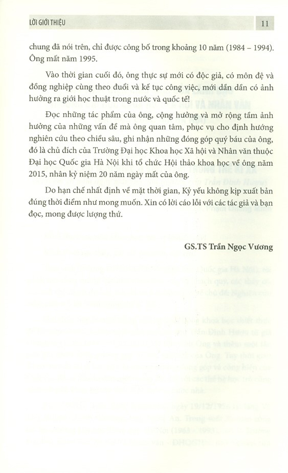 Đọc những tác phẩm của ông, cộng hưởng và mở rộng tầm ảnh hưởng của những vấn đề mà ông quan tâm, phục vụ cho định hướng nghiên cứu theo chiều sâu, ghi nhận những đóng góp quý báu của ông, đó là chủ đích của Trường Đại học Khoa học Xã hội và Nhân văn thuộc Đại học Quốc gia Hà Nội khi tổ chức Hội thảo khoa học về ông năm 2015, nhân kỷ niệm 20 năm ngày mất của ông.