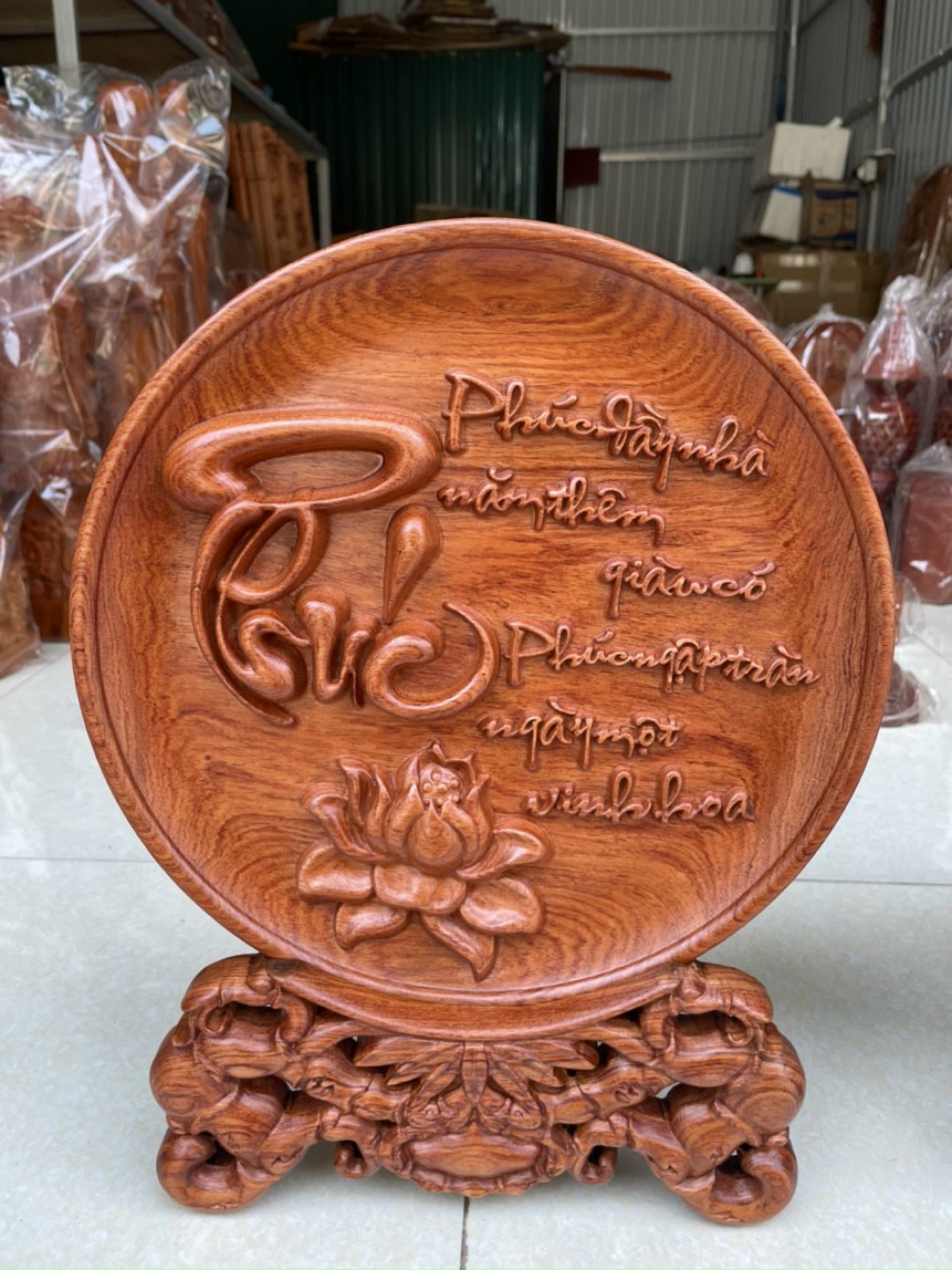 TRANH ĐĨA GỖ HƯƠNG ĐỂ BÀN. CHẤT LIỆU GỖ HƯƠNG LIỀN KHỐI LỤC LẠC, ĐỤC NỔI RẤT TINH XẢO - SƠN PU CAO CẤP ĐĨA ĐƯỢC THIẾT KẾ THÁO LẮP PHẦN CHÂN RẤT TIỆN LỢI