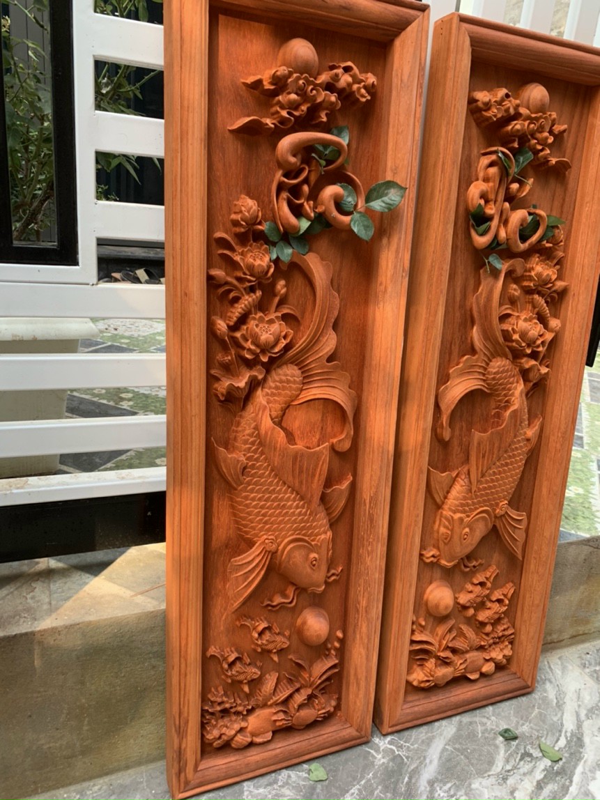 Đôi Cá Lý Ngư Vọng Nguyệt Giá : 3tr5 FREESHIP Kích thước : 107/37/4 Gỗ Hương Đỏ Nam Phi