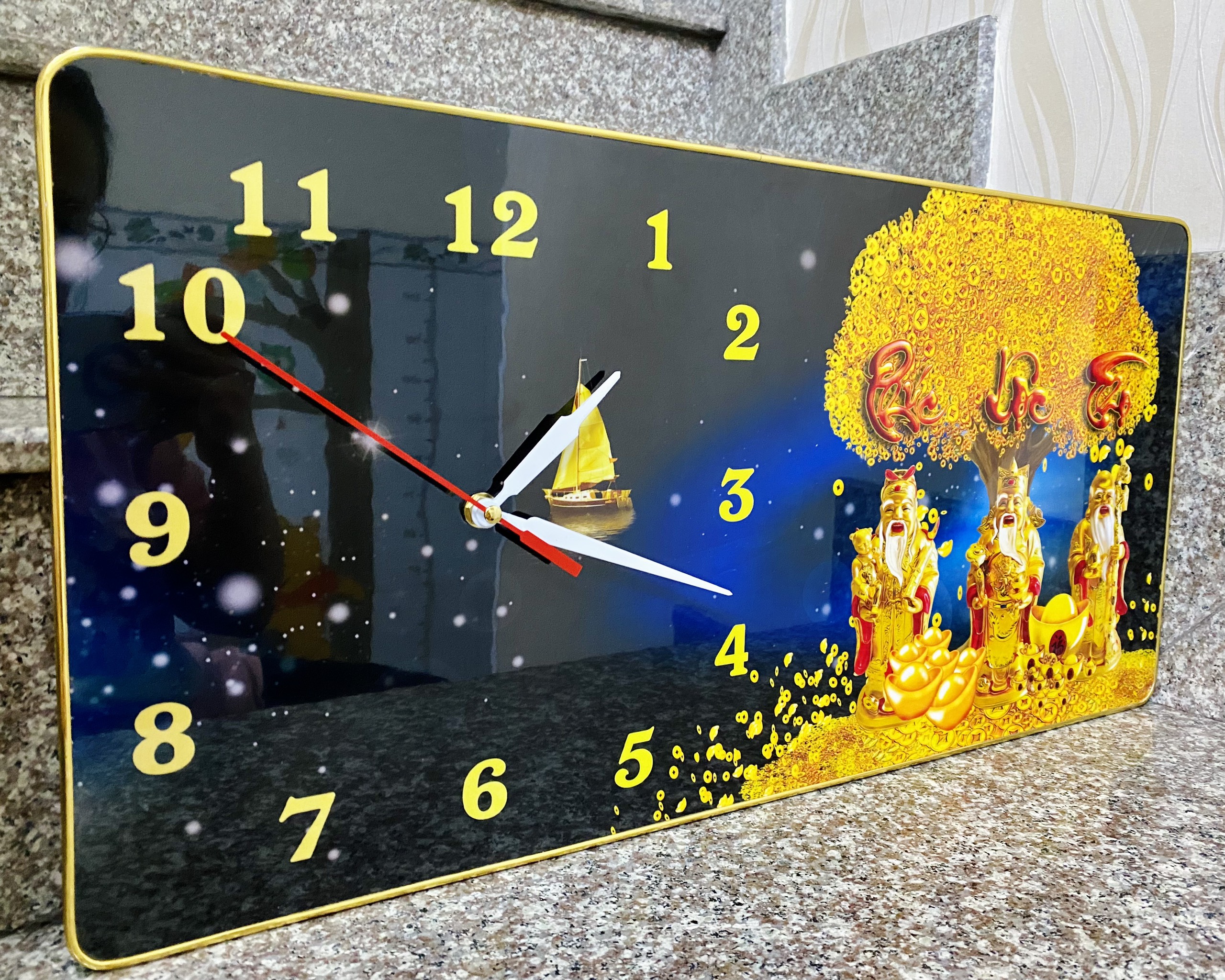 Tranh đồng hồ tráng gương phúc lộc thọ