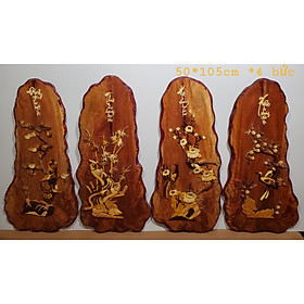 Tranh bộ tứ quý- Xuân hạ thu đông- tùng cúc trúc mai - Tranh ghép gỗ- Tranh gỗ đục khắc.