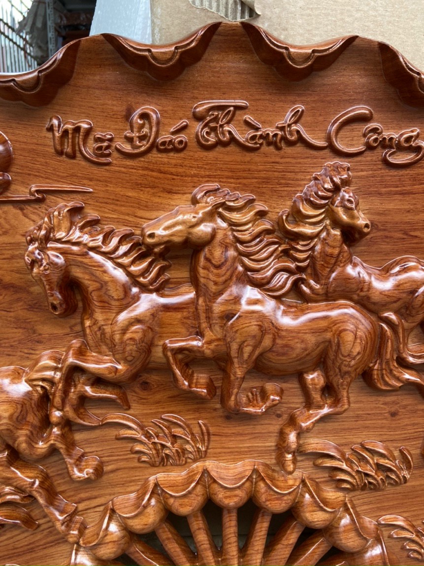 Mẫu tranh mã đáo thành công 67x127 sắc nét gỗ hương đẹp trong tầm giá 3tr5