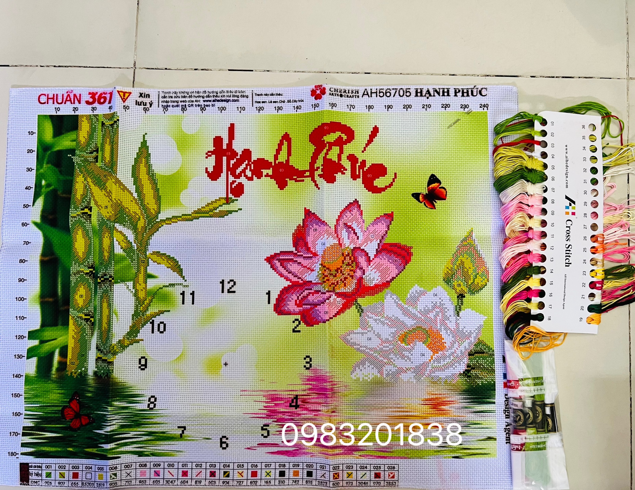 Tên tranh: Tranh thêu chữ thập Đồng hồ Hạnh phúc AL56705