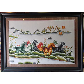 Tranh thêu tay Huế - tranh thêu mã đáo thành công - bát mã thành công