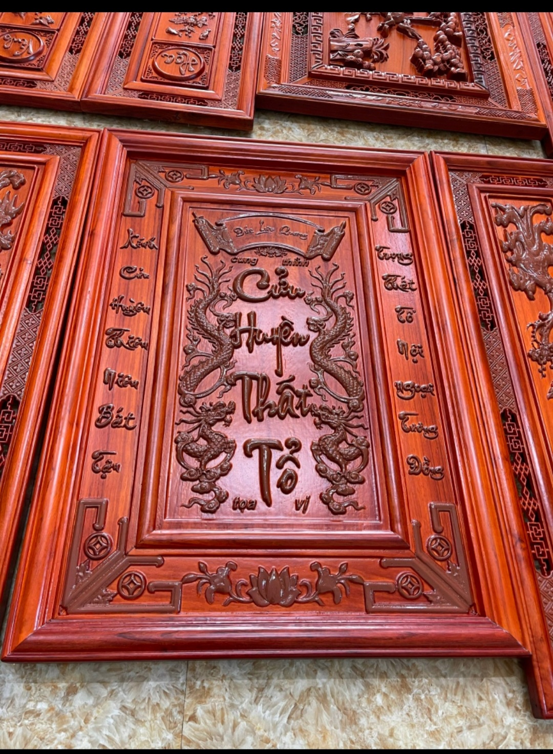 Tranh thờ cửu huyền thất tổ gỗ hương đỏ - chữ việt #dogomynghe #cuuhuyenthatto