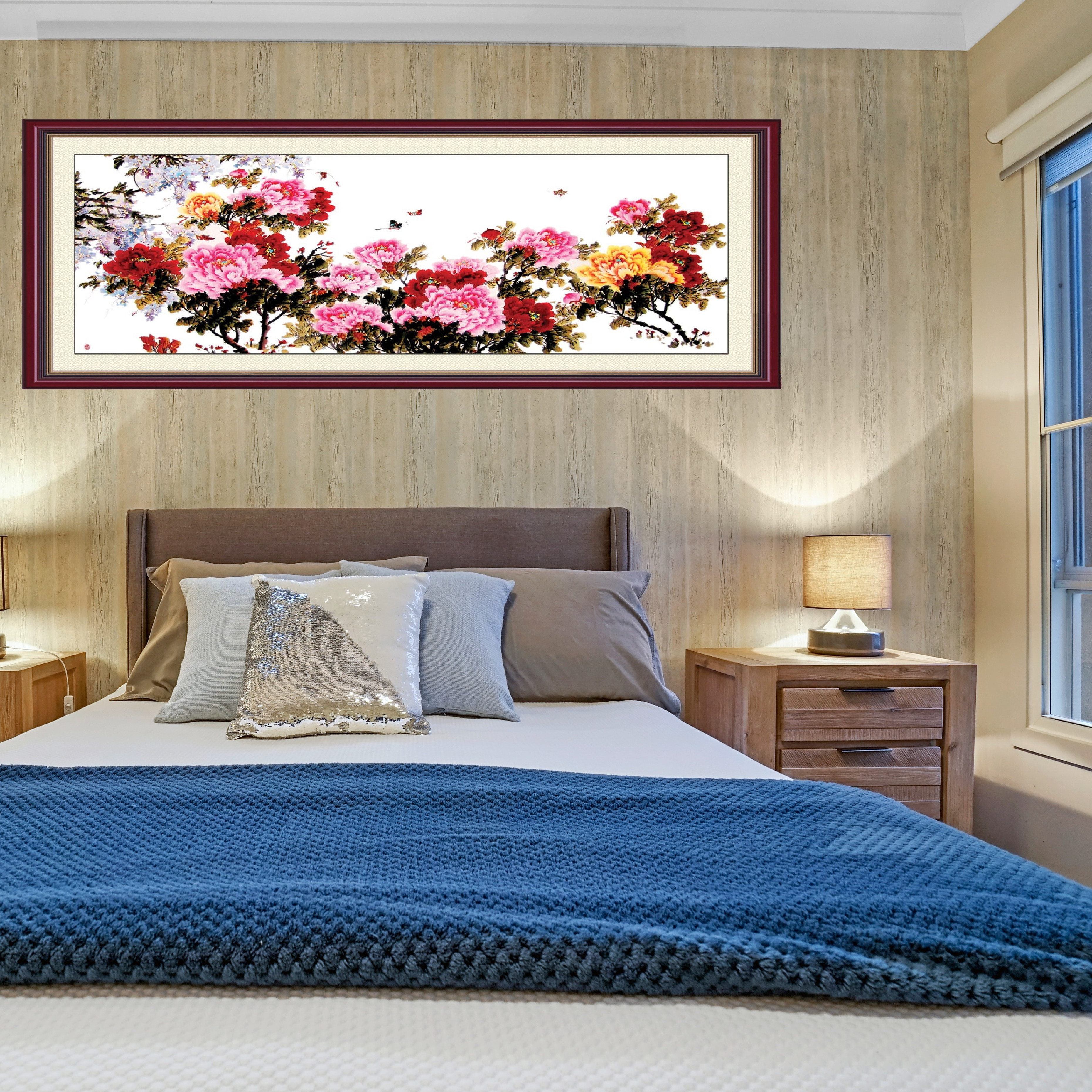 ✨TRANH TREO PHÒNG NGỦ HOA MẪU ĐƠN HỒNG PVP-PN02