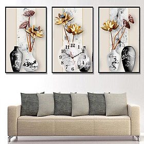 ✨Tranh Treo Tường 3d Bình Hoa Đồng Hồ Có Khung Vân Gỗ + Tặng Kèm Đinh 3 Chân