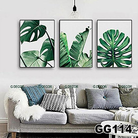 ✨Tranh treo tường canvas 3 bức phong cách hiện đại Bắc Âu 114, tranh lá cây trang trí phòng khách, phòng ngủ, spa