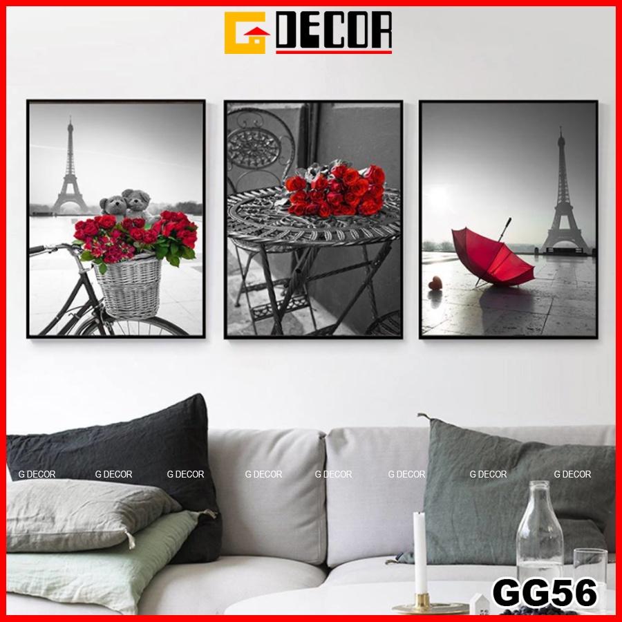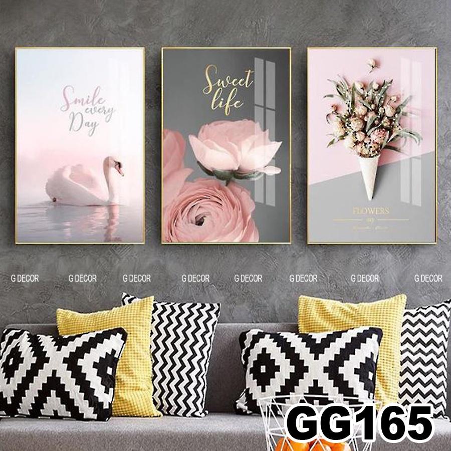 ✨Tranh treo tường canvas khung gỗ 3 bức phong cách hiện đại Bắc Âu tranh hoa hồng trang trí phòng khách phòng ngủ spa 56