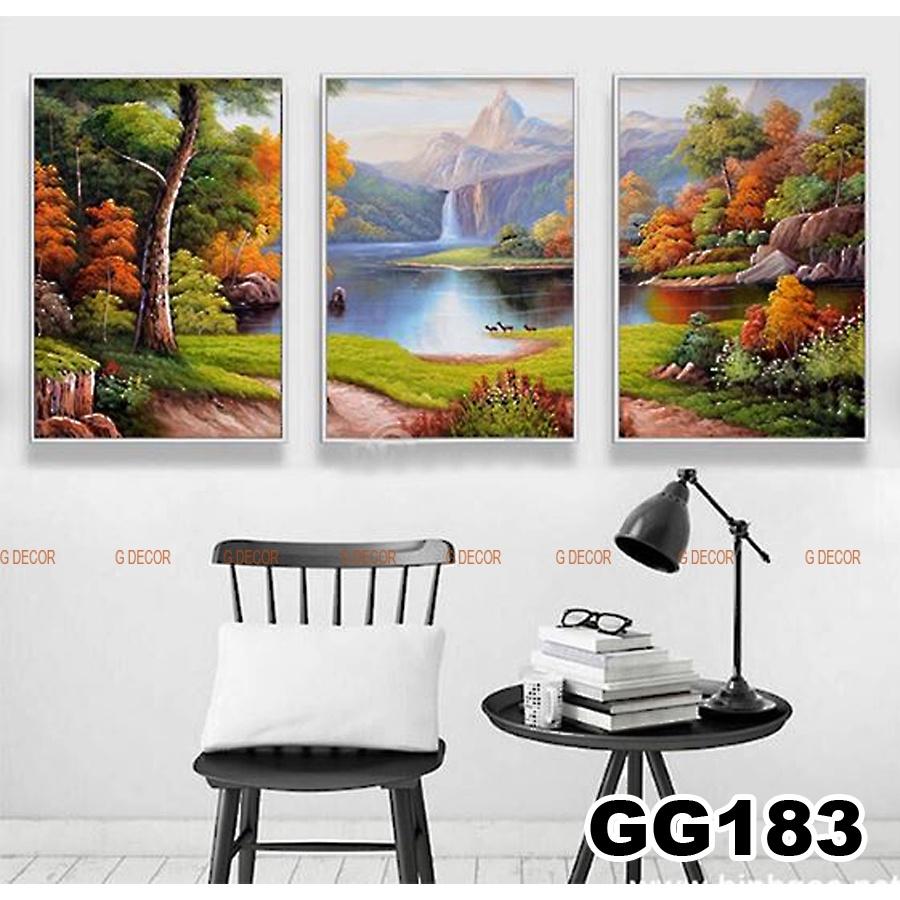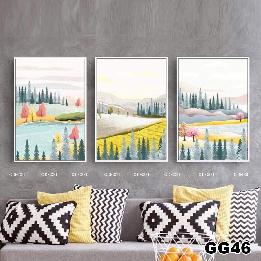 ✨Tranh treo tường canvas khung gỗ 3 bức phong cách hiện đại Bắc Âu tranh phong cảnh trang trí phòng khách phòng ngủ 36