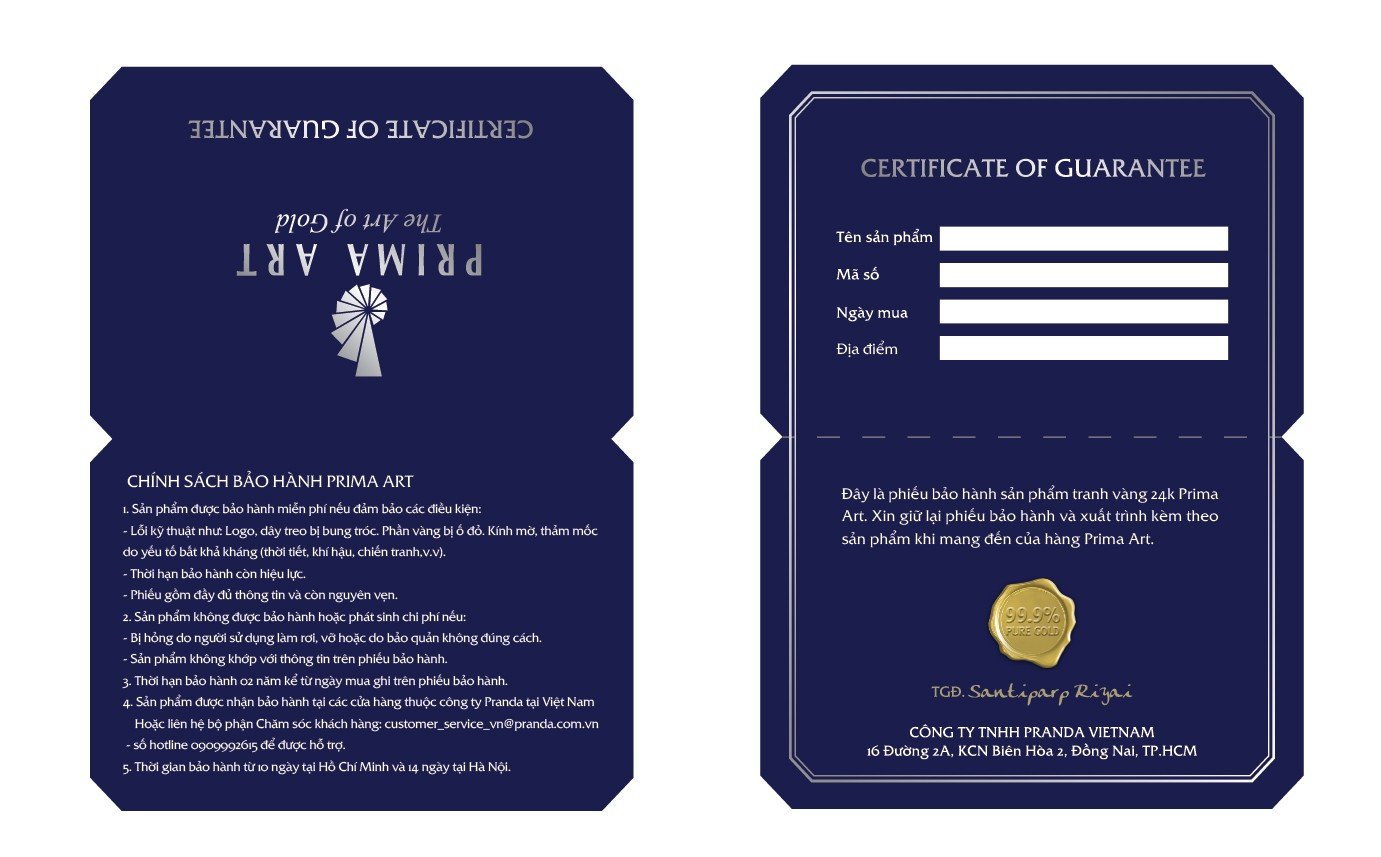 Chế tác bằng chất liệu vàng 24K Thụy Sĩ, hình ảnh đôi cá chép trải qua nhiều thao tác như mo, vuốt, làm nhám, đánh khối tạo ra độ bóng sáng sinh động cho tác phẩm. Đôi cá chép được người nghệ nhân Prima Art khắc họa tinh xảo, nổi bật là bộ vảy và những chiếc vây trên lưng.