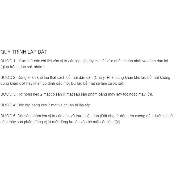 lắp đặt đơn giản với keo 2 mặt có sẵn ở mặt sau sản phẩm- chỉ việc hơ nóng keo và dán lên bề mặt cần dán