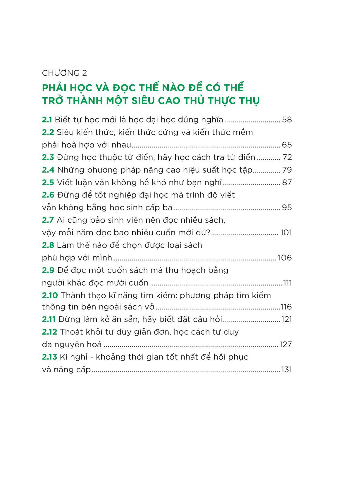 Xoay quanh 6 chủ đề được sinh viên quan tâm hiện nay, Đợi Đến Tốt Nghiệp Thì Đã Muộn mang đến những chia sẻ thực tế về việc lựa chọn chuyên ngành, có phương pháp học tập phù hợp, có hướng tiếp cận đúng đắn về thực tiễn xã hội, tình bạn – tình yêu, xây dựng kế hoạch tốt nghiệp và biết cách quản lí bản thân. Với mỗi chủ đề, cuốn sách đưa ra những ví dụ thiết thực hướng tư duy dễ hiểu, những phương án hành động bắt nhịp cùng thời đại, xen kẽ những trải nghiệm thực tiễn và tương tác thú vị của hai tác giả.