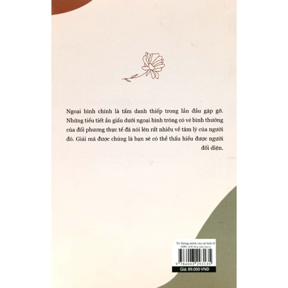 Trí Thông Minh Của Sự Tinh Tế CÓ PHẢI MUỐN ĐƯỢC CHIỀU THÌ PHẢI “BIẾT ĐIỀU"? Vì sao có những cô gái cuộc sống lúc nào cũng gặp may mắn, đi làm thì dễ dàng thăng tiến, về nhà thì được chồng yêu thương, gia đình thuận hoà chẳng cãi vã bao giờ? Tất cả là nhờ “Trí thông minh của sự tinh tế" cả đấy! “Trí thông minh" ấy không phải sẵn có trời sinh mà là do quá trình rèn giũa tạo thành. Thành thật mà nói thì phụ nữ, ai mà chẳng muốn được yêu chiều? Nhưng đôi khi muốn được cưng chiều mà không khéo léo lại thành đòi hỏi. Đôi khi đặt ra những tiêu chuẩn cho các mối quan hệ, nhưng không biết cách diễn đạt sẽ thành thực dụng… Thẳng thắn không xấu nhưng sống tinh tế sẽ tốt hơn rất nhiều. Khi có được “Trí thông minh của sự tinh tế" bạn sẽ biết: Bộc lộ nhu cầu không có gì sai nhưng phải “đòi hỏi" làm sao mà người ta sẽ vui vẻ, tự nhiên  thực hiện điều đó cho mình trong hạnh phúc. Hiểu rõ bản thân, nhưng cũng hiểu rõ người bên cạnh. Biết yêu chính mình nhưng càng biết yêu thương người khác. Có được hạnh phúc mà không quên đi lòng biết ơn. Được cưng chiều cũng sẽ không quên chăm sóc, quan tâm đến đời sống, tinh thần của người mình yêu thương, Cuốn sách “Trí thông minh của sự tinh tế" sẽ giúp bạn hiểu rõ tâm tư người đối diện thông qua ngôn ngữ cơ thể, giao tiếp, ngoại hình, thói quen, sở thích… để từ đó có được những gì mình mong muốn và khiến những người xung quanh mình cũng cảm thấy hạnh phúc hơn, cuộc sống tốt đẹp, hài hoà hơn. “Trí thông minh của sự tinh tế": Cuốn sách giúp phụ nữ tìm thấy vẻ đẹp và “sức mạnh" đích thực toát ra từ cốt cách bên trong!