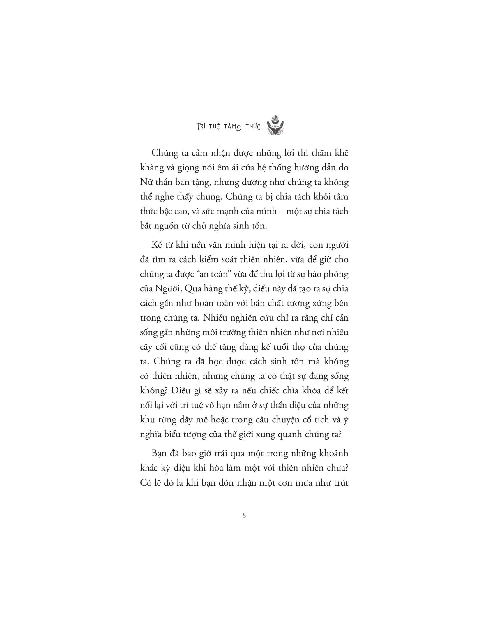 Cuộc sống hối hả và bận rộn khiến con người chúng ta có xu hướng dùng lý trí để điều khiển mọi hành vi và quyết định. Điều này vô hình khiến chúng ta bị tổn thương cả về thể chất lẫn tinh thần và cảm xúc. Chúng ta đã quên rằng sâu thẳm bên trong chúng ta là trực giác có sức mạnh vô biên, thứ có thể khiến chúng ta mở rộng thế giới quan và biết đâu mới là con đường đúng đắn. Trực giác có thể biến bạn thành người thầy, người hướng dẫn, người chữa lành và người hùng trong câu chuyện của chính bạn.