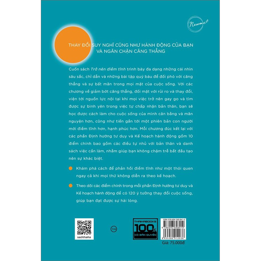 Cuốn sách Trở nên điềm tĩnh trình bày đa dạng những cái nhìn sâu sắc, chỉ dẫn và những bài tập quý báu để đối phó với căng thẳng và sự bất mãn trong mọi mặt của cuộc sống. Với các chương về giảm bớt căng thẳng, đối mặt với rủi ro và thay đổi, viện tới nguồn lực nội tại khi mọi việc trở nên gay go và tìm được sự bình yên trong việc tự chấp nhận bản thân, bạn sẽ học được cách làm cho cuộc sống của mình cân bằng và mãn nguyện hơn, cũng như tiến gần tới một phiên bản con người mới điềm tĩnh hơn, hạnh phúc hơn.