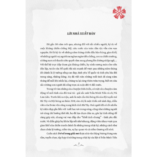 Cuốn sách được xuất bản lần đầu năm 2005. Trong lần xuất bản này, chúng tôi cung cấp thêm cho độc giả nội dung đầy đủ 109 bức thư của liệt sĩ Trần Minh Tiến gửi cho người yêu Lưu Liên. Bạn đọc có thể quét mã QR in kèm nội dung sách để đọc và cảm nhận những tâm tư, tình cảm, suy nghĩ sâu sắc đầy yêu thương và trách nhiệm đối với người yêu, đối với cuộc đời, đối với Tổ quốc của người lính trẻ Trần Minh Tiến.