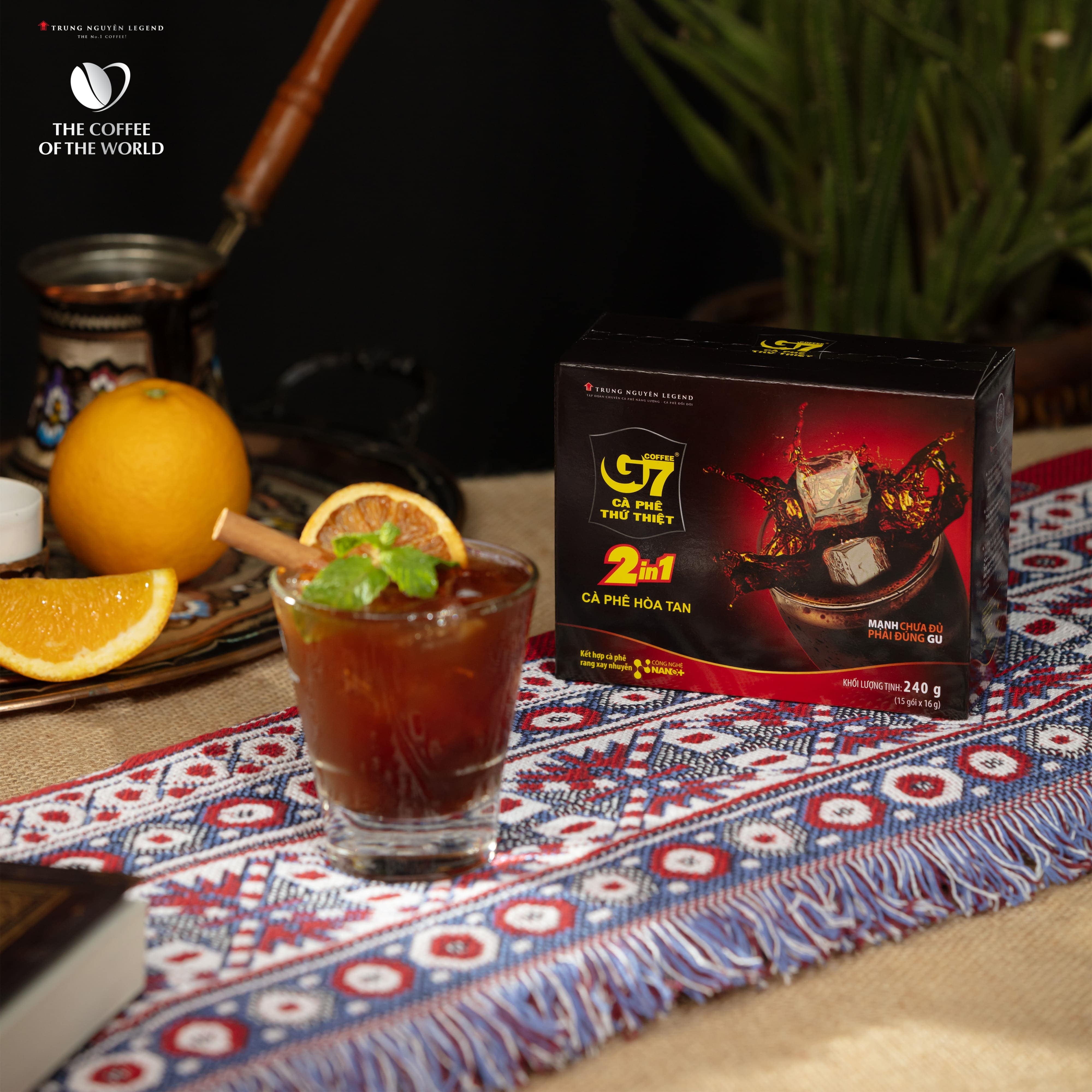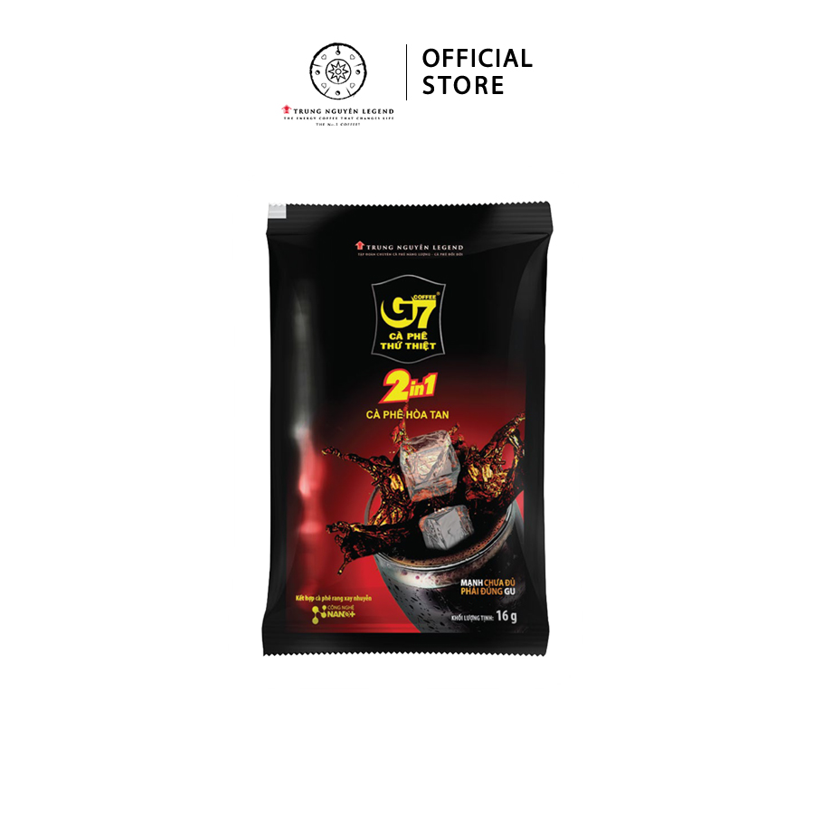- Được chiết xất từ những hạt cà phê tốt nhất thế giới. Sản xuất trên công nghệ hàng đầu và bí quyết không thể sao chép, cà phê hòa tan G7 2in1 có hương vị mạnh, đúng "gu" uống cà phê đen của người Việt, giữ được vị đắng thật của cà phê rang xay đem đến cho người thưởng thức một ly cà phê đen thứ thiệt.