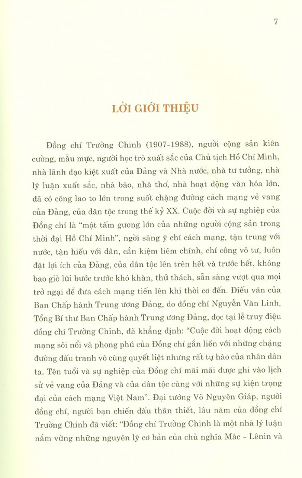 Mua tại TiktokSách tập hợp các bài viết của các đồng chí lãnh đạo Đảng và Nhà nước, các nhà hoạt động khoa học, văn hóa, xã hội và những người làm việc gần gũi với đồng chí Trường Chinh qua các thời kỳ về những cống hiến to lớn của đồng chí Trường Chinh đối với Đảng và dân tộc; những kỷ niệm sâu sắc về đồng chí Trường Chinh; một số tác phẩm tiêu biểu của đồng chí.