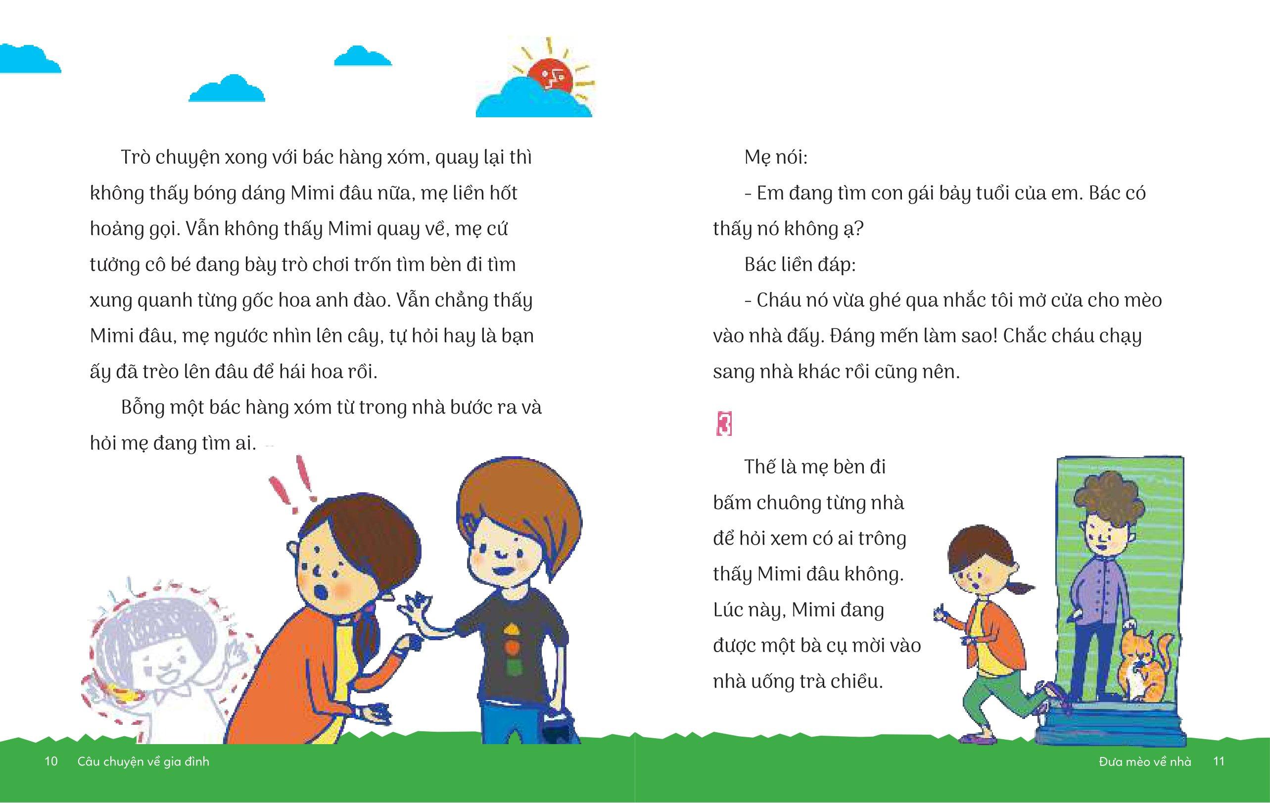 Truyện Kể Và Kiến Thức Dành Cho Lứa Tuổi Nhi Đồng – Tập 3 – Gia Đình – Đưa Mèo Về Nhà bao gồm các mẩu chuyện về gia đình: tổ ấm, bố mẹ, ông bà, anh chị em, vật nuôi, ở một m.ình, bữa tối gia đình, làm việc nhà, thái độ khi khách đến chơi nhà. Mười câu chuyện hấp dẫn với những góc nhìn khoa học thú vị góp phần kích thích trí tò mò, khuyến khích trẻ quan tâm đến người thân cũng như thấu hiệu được tầm quan trọng của gia đình.