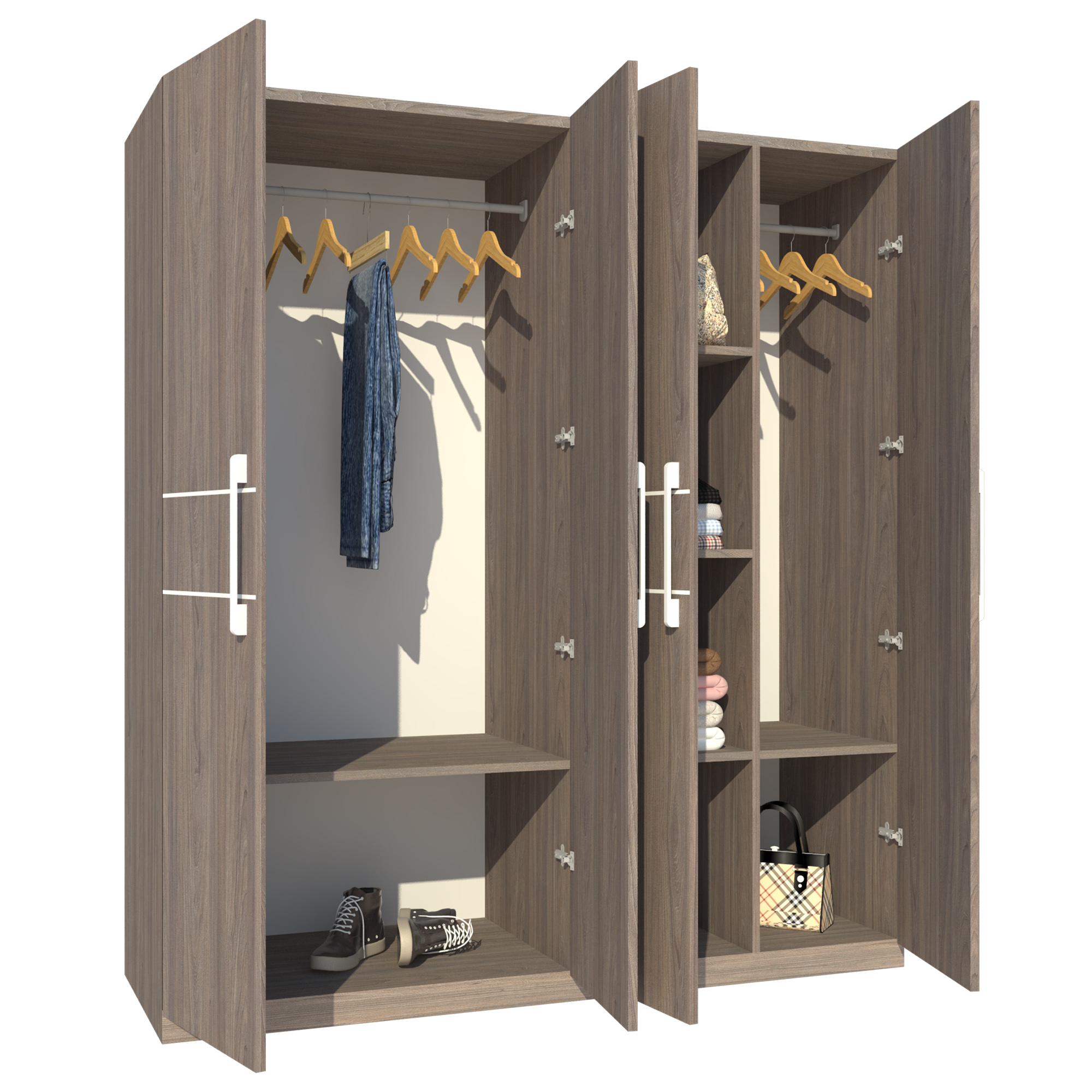 + Thiết kế sang trọng và tinh tế - Tủ quần áo gỗ cao cấp 1012-OHAHA 6 cánh mở với gam màu tối giản tạo cảm giác thư giản mà sang trọng. Là mẫu tủ