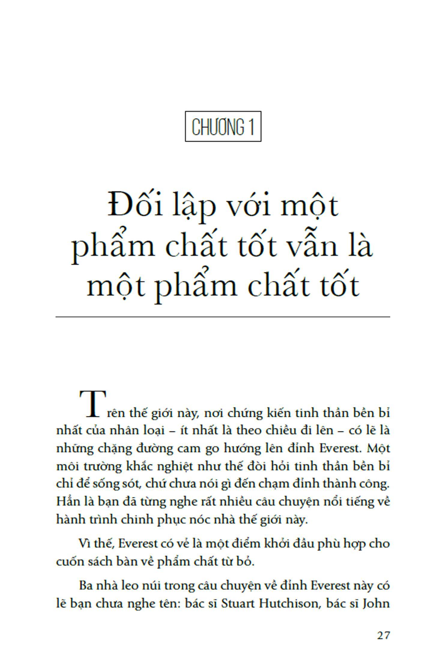 Để làm rõ thêm vấn đề, tác giả còn đào sâu vào các nghiên cứu khoa học về quyết định từ bỏ và đưa ra những bằng chứng cho thấy tất cả chúng ta đều có khuynh hướng cân đo rất kém giữa lựa chọn kiên trì và từ bỏ. Cụ thể, khi đối mặt với tình huống xấu, chúng ta thường có xu hướng kiên trì quá lâu, nhưng khi có được trạng thái tốt đẹp thì lại từ bỏ quá sớm.