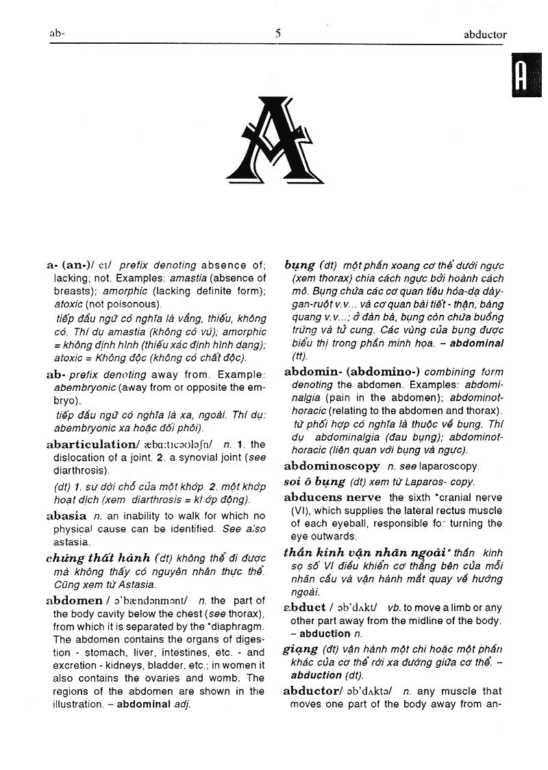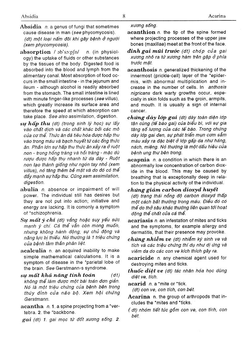Từ Điển Y Học Anh - Việt Với cách trình bày khoa học và giải thích rõ ràng, cuốn từ điển sẽ đáp ứng được yêu cầu của tất cả những người đang học ngành Y cũng như đang sử dụng tiếng Anh. Hy vọng cuốn từ điển sẽ là cẩm nang tra cứu hữu ích cho nhiều đối tượng bạn đọc, đặc biệt là các bạn học sinh, sinh viên đang học tập trong lĩnh vực này. Cuốn từ điển có: