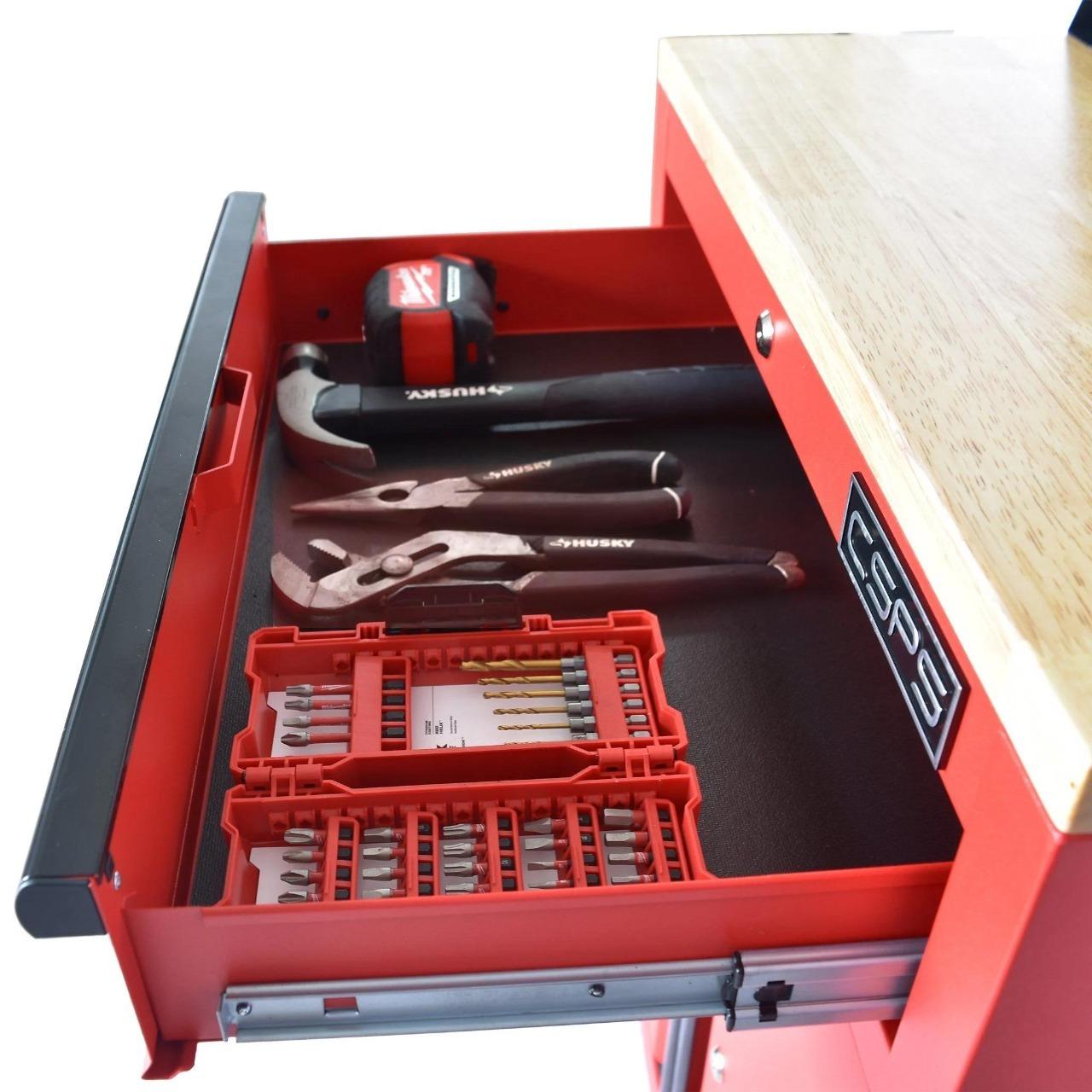 Tủ dụng cụ 7 ngăn kéo có mặt ván gỗ kèm ray đóng êm CSPS THÔNG SỐ KỸ THUẬT 1) THÔNG SỐ CHUNG Kích thước sản phẩm: 76,5 cm W x 46,2 cm D x