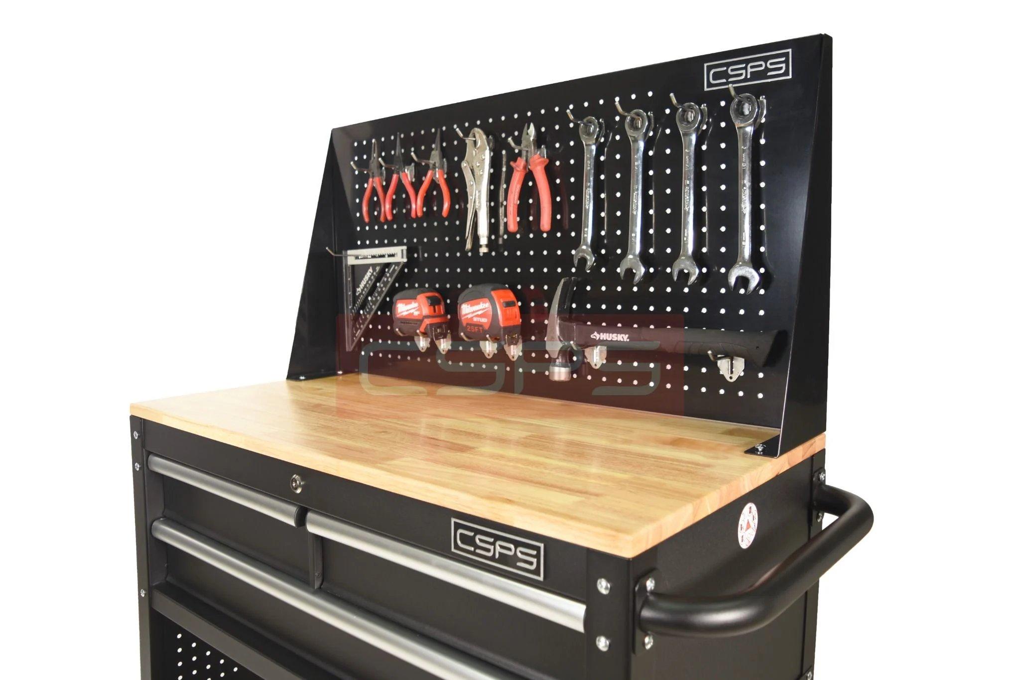 Tủ dụng cụ CSPS 7 ngăn kéo, mặt ván gỗ và vách lưới chất lượng cao. THÔNG SỐ KỸ THUẬT 1 THÔNG SỐ CHUNG Kích thước sản phẩm: 76.4 cm Ngang x 46.2cm Sâu x 96