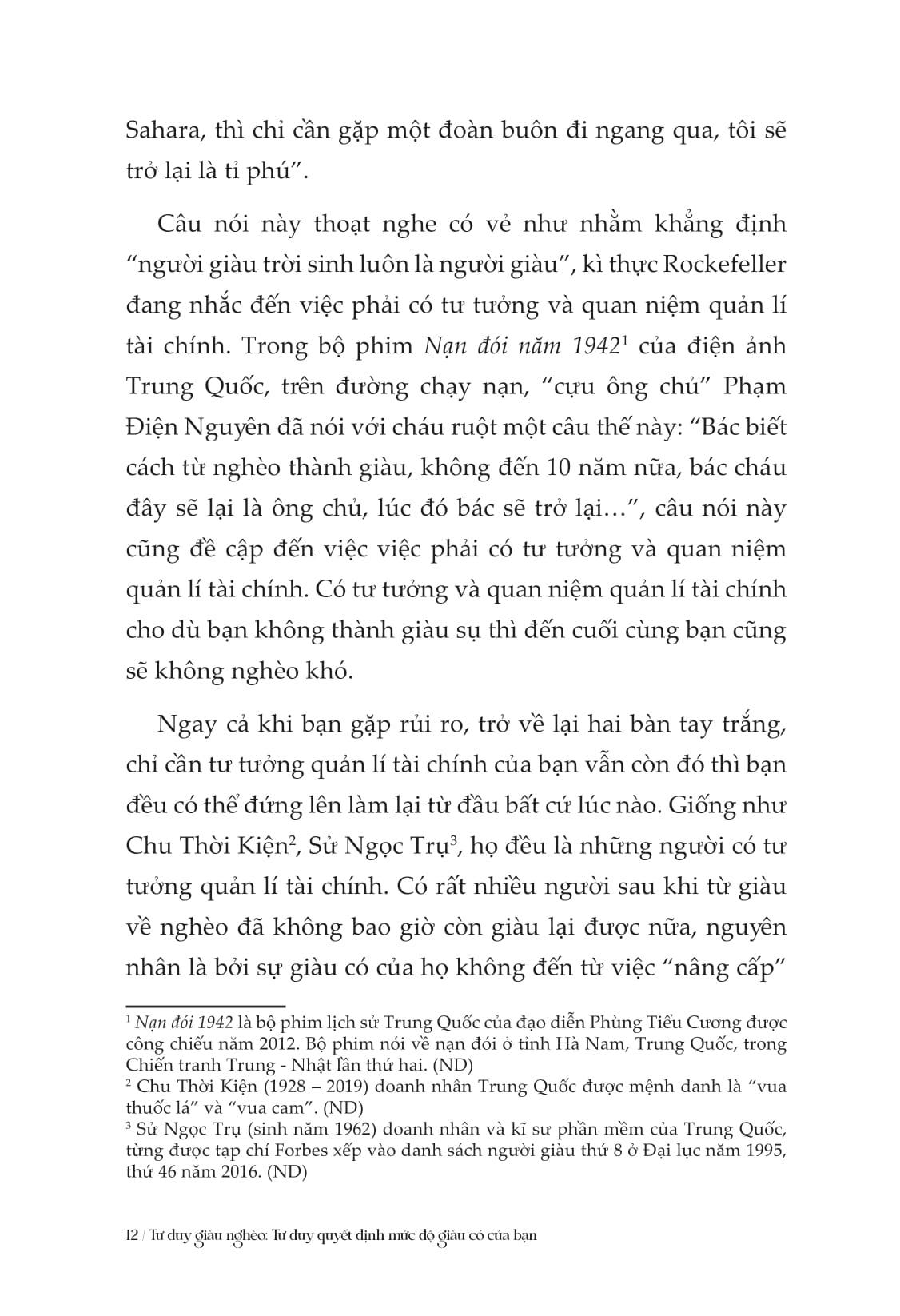 Warren Buffett đã từng nói: “Không có cái ví nào nghèo, chỉ có những cái đầu nghèo”. Sự khác biệt giữa người nghèo và người giàu không phải ở số lượng của cải mà là sự khác biệt ở tư duy tài chính và phương thức kiếm tiền. Nếu bạn thực sự muốn trở nên giàu có thì bạn nhất định phải vừa học cách làm ra tiền, vừa học cách quản lí và sử dụng đồng tiền.