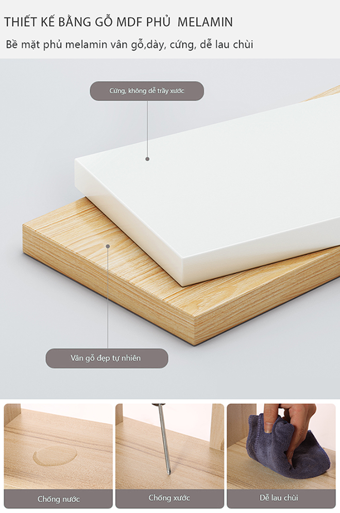Chất liệu: Gỗ mdf phủ melamin chống xước