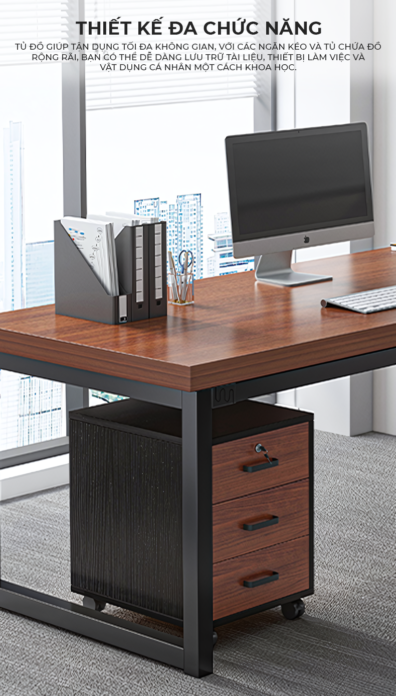 Tủ tài liệu 3 ngăn kéo, có bánh xe.