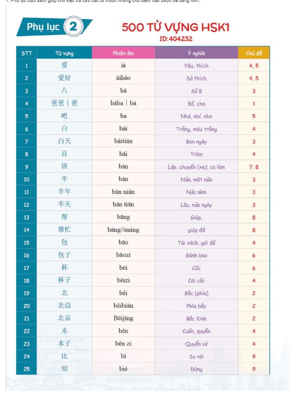 - 500 từ vựng HSK1 được cập nhật theo khung đánh giá năng lực Hán ngữ HSH 9 cấp mới nhất.