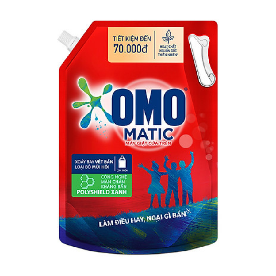 - Thân thiện môi trường với hoạt chất có nguồn gốc từ thiên nhiên OMO tự hào cùng các bé lấm bẩn trồng cây, kiến tạo thêm nhiều màn chắn xanh cho Việt Nam OMO MATIC - LỰA CHỌN THÔNG MINH ĐỂ CHĂM SÓC ÁO QUẦN GIA ĐÌNH MỘT CÁCH TOÀN DIỆN NHẤT OMO Matic mới được nâng cấp với hoạt chất làm sạch nguồn gốc thiên nhiên, thân thiện hơn với môi trường. Công nghệ Màn chắn Kháng bẩn Polyshield Xanh, giúp bao bọc và phủ một lớp màn chắn vô hình lên bề mặt sợi vải, loại bỏ nhanh chóng vết bẩn cứng đầu và mùi hôi trên áo quần Sản phẩm nước giặt OMO Matic Cho Máy Giặt là sự lựa chọn hàng đầu cho máy giặt cửa trên và luôn được khuyên dùng bởi 11 hãng máy giặt hàng đầu thế giới như Aqua, Panasonic, LG, S. ƯU ĐIỂM NỔI BẬT