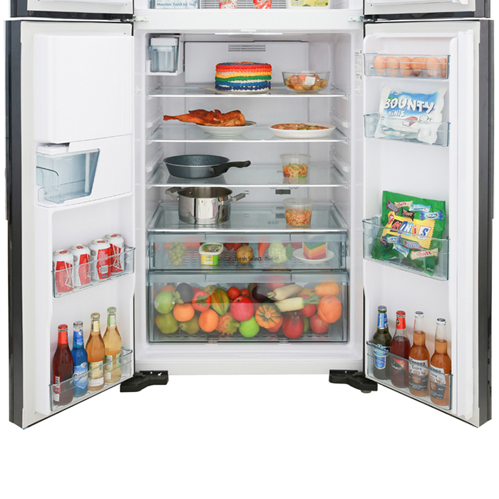 - Hỗ Trợ Suốt Thời Gian Sử Dụng Thiết kế phẳng mạnh mẽ, hiện đại Tủ Lạnh Inverter Hitachi R-FW690PGV7X-GBK được thiết kế theo kiểu side by side, dòng sang trọng với 4 cửa và tích hợp vòi lấy nước ngoài cánh tiện dụng, giúp người dùng dễ dàng thao tác sử dụng kết hợp với gam màu đen tinh tế mang đến vẻ đẹp hiện đại cho không gian nội thất nhà bạn. Hơn nữa, chiếc tủ lạnh Hitachi có dung tích lên đến 540 lít sở hữu không gian lưu trữ vô cùng rộng rãi, phù hợp với những gia đình 5 - 7 người. Công nghệ Inverter với hệ thống quạt kép giúp tiết kiệm điện Tủ lạnh được trang bị công nghệ Inverter tiến tiến, giúp kiểm soát lượng khí đi đến từng ngăn, đảm bảo không có sự lãng phí điện năng và được xếp hạng tiết kiệm điện hàng đầu thế giới. Cùng với hệ thống quạt kép hiện đại giúp làm lạnh độc lập và hiệu quả cho cả hai ngăn (ngăn lạnh và ngăn đá). Hệ thống quạt kép cải tiến mới này sẽ mang đến hiệu quả tiết kiệm điện năng tốt hơn và làm lạnh cực mạnh, hỗ trợ bởi bộ đôi cảm biến nhiệt Eco được trang bị cho từng ngăn, giúp nhận biết sự thay đổi nhiệt độ tại mọi thời điểm. Với khả năng giữ lạnh lâu, có thể giữ không khí lạnh thêm 12 giờ khi bị mất điện và ngay cả khi nhiệt độ của môi trường bên ngoài lên đến 60°C, mọi không gian bên trong tủ lạnh vẫn hoàn toàn mát. Tủ còn hoạt động ổn định với sự dao động điện áp rộng, từ 130V tới 300V. Tính năng Fresh Select Thiết bị được trang bị tính năng Fresh Select thông minh với tính năng này cho phép điều chỉnh nhiệt độ bên trong ngăn dễ dàng bằng cách chuyển đổi giữa hai chế độ sữa/thịt và rau quả: Chế độ trữ rau quả