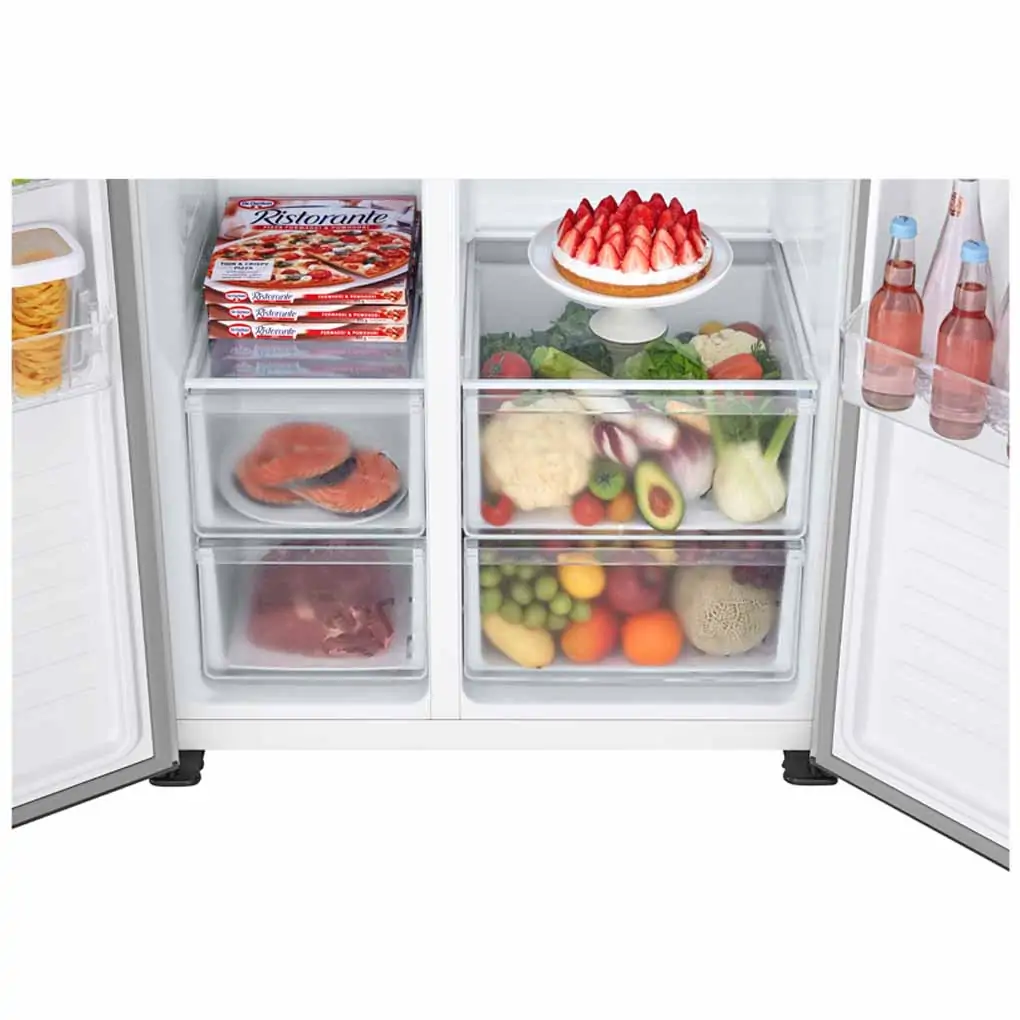 Thông tin chung Loại tủ Side by side Dung tích thực 519 Lít Đóng tuyết Không đóng tuyết Tính năng sản phẩm Công nghệ tiết kiệm điện Inverter Chỉnh nhiệt độ Thủ công Ngăn chứa Ngăn đựng chai lọ Có Thống số kĩ thuật Công suất tiêu thụ Kích thước Cao 178.6 cm x Rộng 91 cm x Sâu 64.3 cm Xuất Xứ & Bảo Hành Hãng sản xuất LG (Thương hiệu: Hàn Quốc) Sản xuất tại Trung Quốc Bảo hành 24 tháng Năm ra mắt 2023