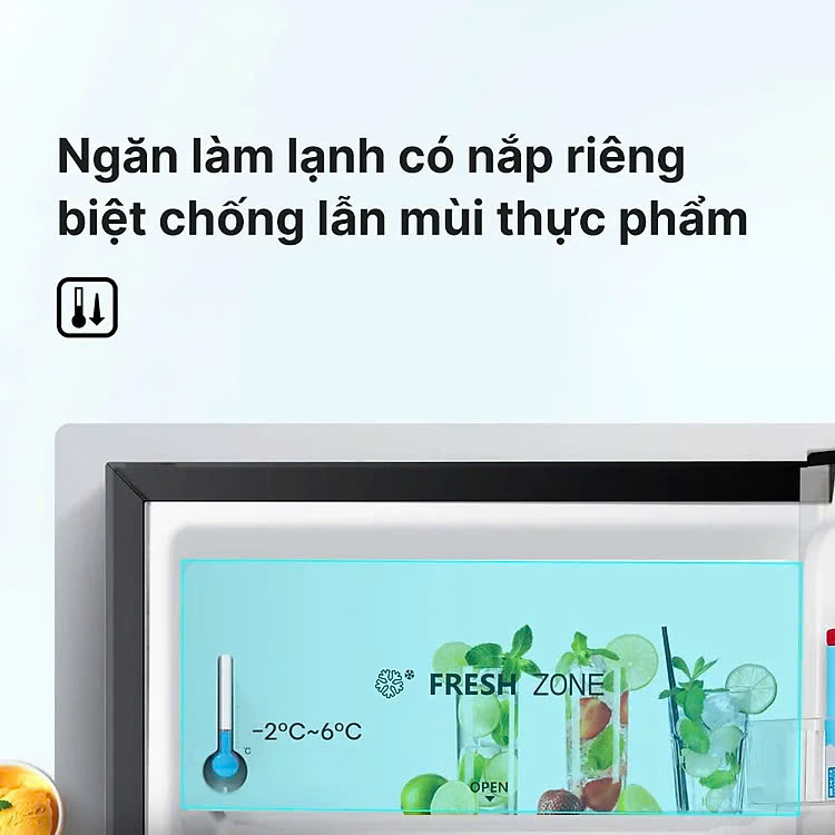 - Ngăn làm lạnh có nắp riêng biệt chống lẫn mùi thực phẩm