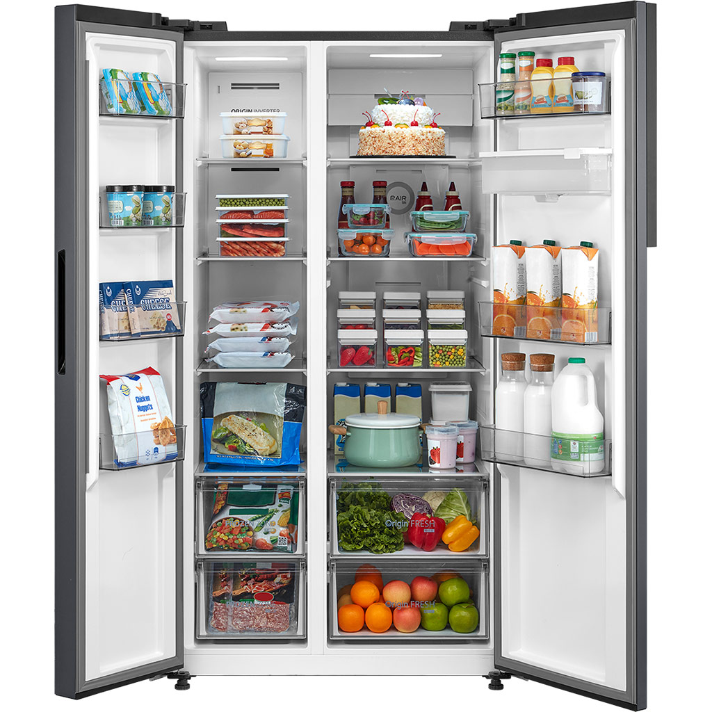 Thông tin chung - Loại tủ Side by side - Dung tích thực 555 lít Tính năng sản phẩm - Công nghệ tiết kiệm điện Origin Inverter - Chỉnh nhiệt độ Bảng điểu khiển bên