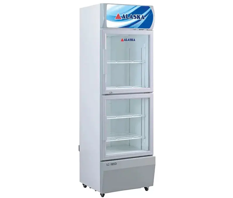 Tủ mát Alaska 382 lít LC-385D thiết kế kiểu tủ đứng 2 cánh với 1 ngăn trên dưới giúp phân bố thực phẩm thuận tiện, công nghệ làm lạnh đối lưu cưỡng bức giúp hơi mát